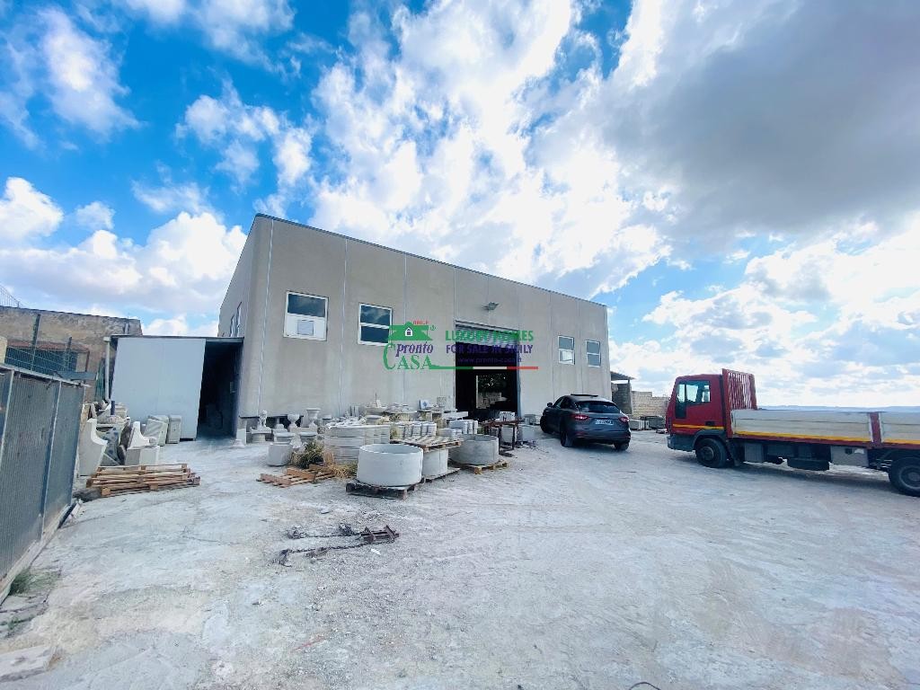 La Pronto Casa vende in zona industriale prima fase capannone di mq 550 circa su un unico livello con antistante piazzale di mq 1700 circa. Il cespite è composto all'ingresso da un ampio vano di mq 350 circa e sul retro da ulteriori quattro vani ad uso ufficio con relativo servizio e ripostiglio. Impianto elettrico a norma , due cisterne di complessivi 30.000 litri di esclusivo uso di cui una alimentata da acqua piovana, fossa IMHOFF. Per maggiori informazioni contattare lo 0932/257603 o visitare il nostro sito